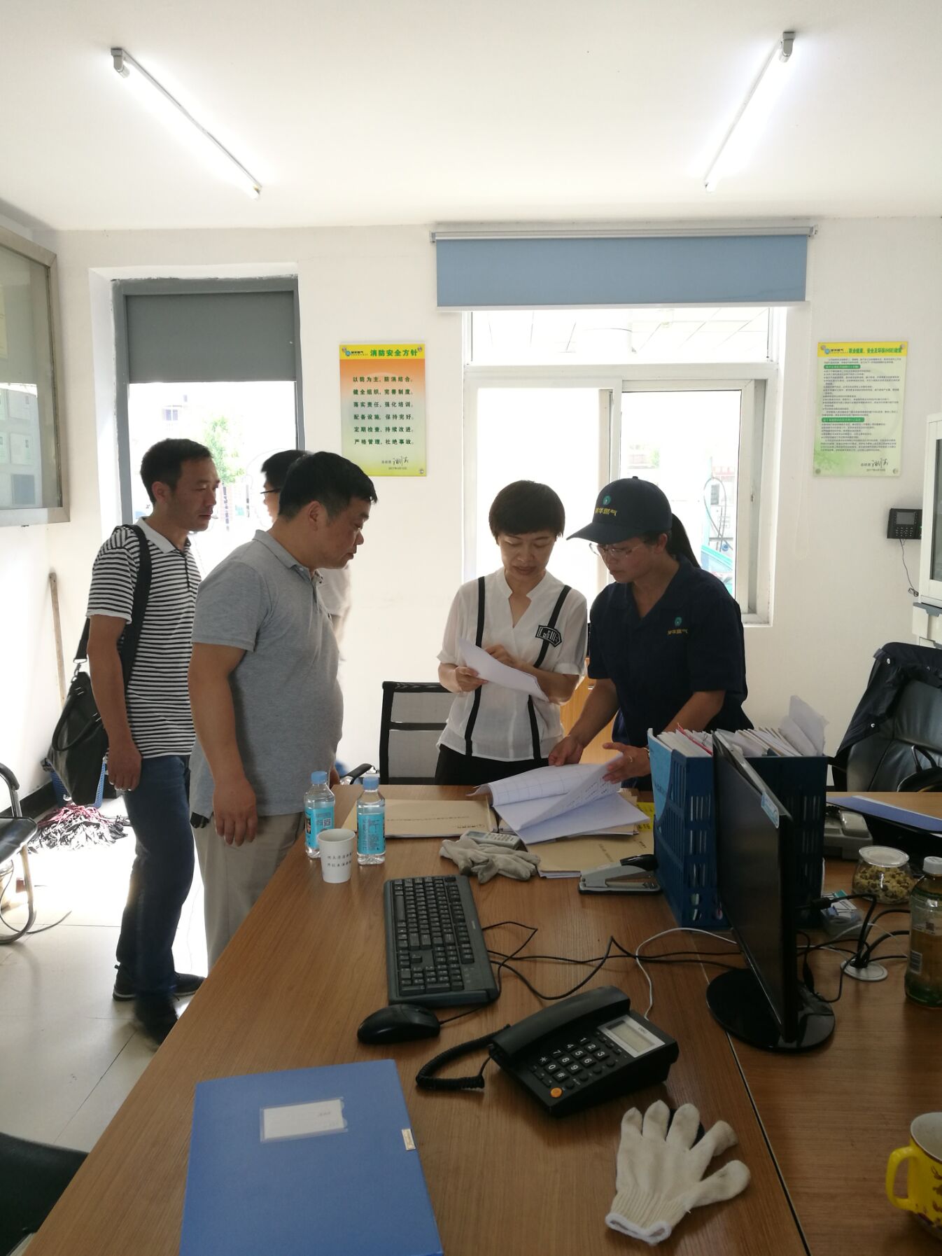 在現(xiàn)場,檢查組一行對燃?xì)馓胤N設(shè)備的安全管理制度和操作規(guī)程是否齊全、特種設(shè)備是否定期檢驗、日常維護(hù)保養(yǎng)是否到位、作業(yè)人員是否持證上崗、安全培訓(xùn)等情況進(jìn)行了細(xì)致的檢查。朱局長對加氣站的規(guī)范式管理給予了充分肯定,并希望安慶港華能再接再厲。他指出,要進(jìn)一步提高全員安全意識,加強設(shè)備的安全檢查、維護(hù),加強用氣安全知識宣傳,落實好防暑降溫工作,確保高溫期間設(shè)備、人員安全。