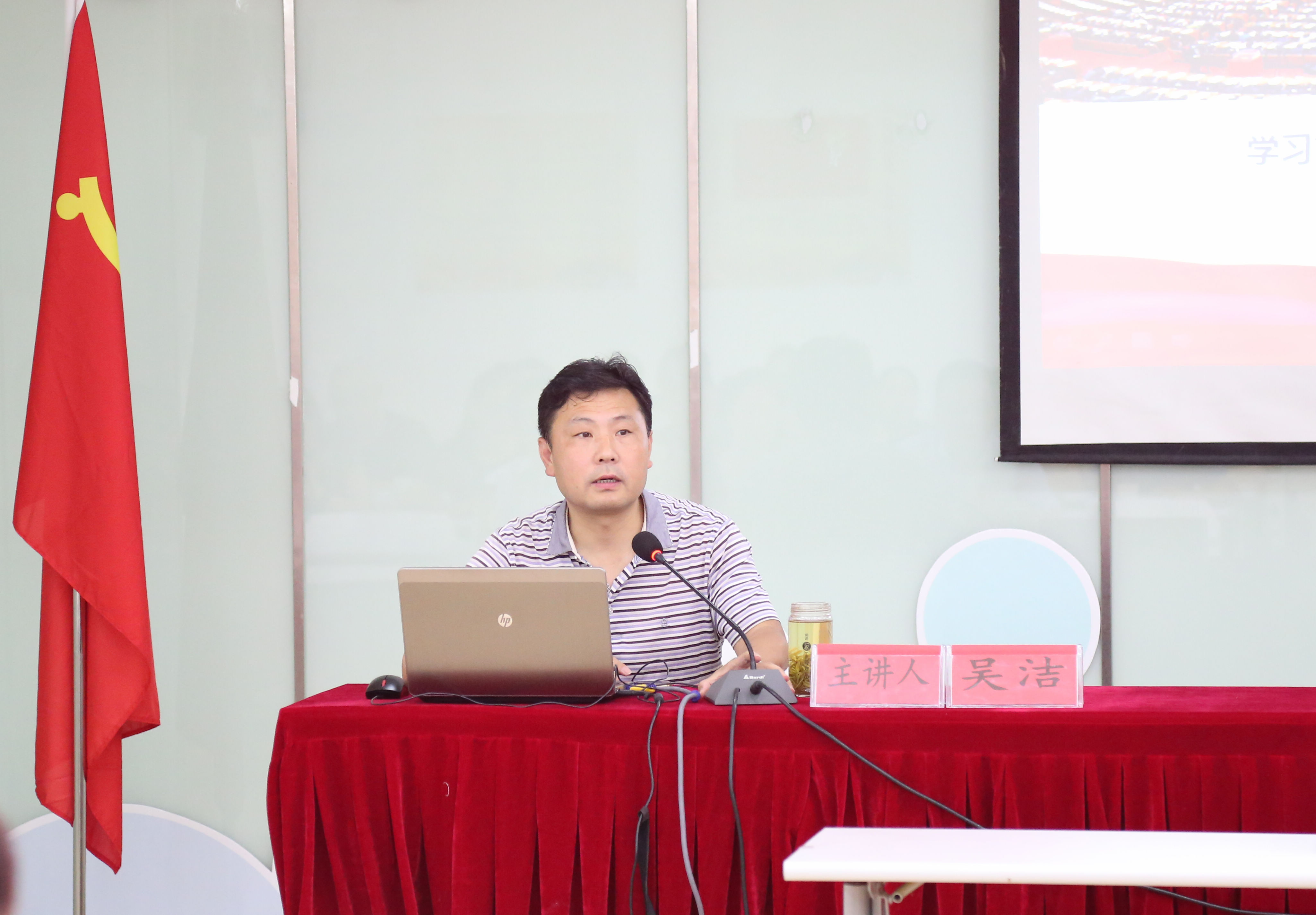 授課中,吳潔教授以“學(xué)習(xí)貫徹習(xí)近平新時(shí)代中國(guó)特色社會(huì)主義思想和黨的十九大精神”為主題,從深刻領(lǐng)會(huì)黨的十九大主題及主要成果、習(xí)近平新時(shí)代中國(guó)特色社會(huì)主義思想的歷史地位和豐富內(nèi)涵、十八大以來(lái)黨和國(guó)家發(fā)生的歷史性變革、新時(shí)代的社會(huì)主要矛盾新變化、全面建設(shè)現(xiàn)代化強(qiáng)國(guó)的戰(zhàn)略部署、堅(jiān)定不移全面從嚴(yán)治黨的重大部署等六個(gè)方面,對(duì)習(xí)近平新時(shí)代中國(guó)特色社會(huì)主義思想及黨的十九大精神作了系統(tǒng)、全面的解讀與闡述。吳教授結(jié)合自己的學(xué)習(xí)體會(huì),運(yùn)用了大量生動(dòng)的數(shù)據(jù)和事例,語(yǔ)言通俗易懂,邏輯清晰有秩,不斷引起在場(chǎng)黨員的共鳴,會(huì)上反響熱烈。