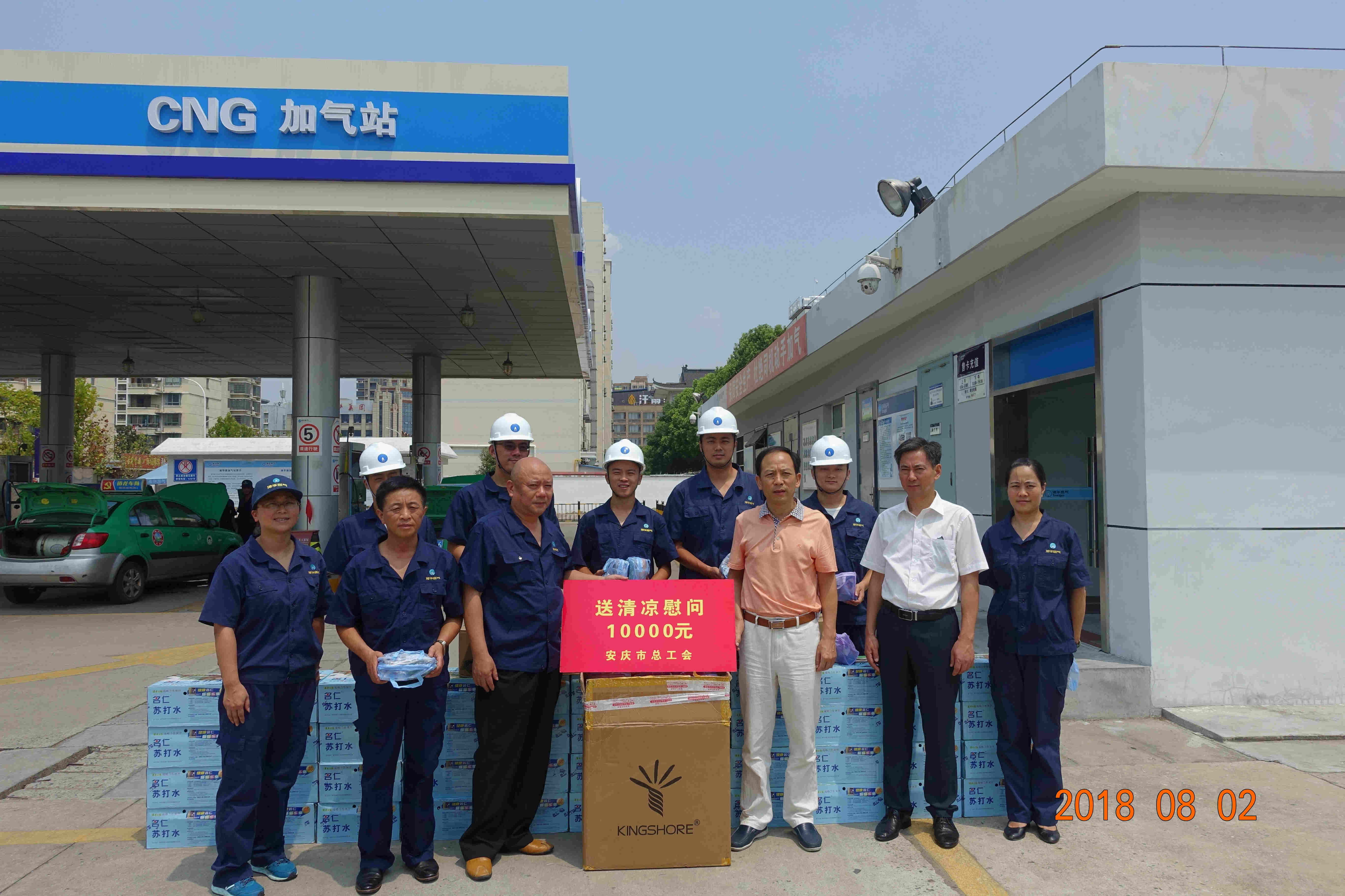 8月2日上午,市總工會(huì)副主席幸敬穩(wěn)一行冒著酷暑來到港華路加氣站開展高溫送清涼慰問活動(dòng),為奮戰(zhàn)在高溫作業(yè)一線的燃?xì)饴毠に腿ハ娜贞P(guān)懷。安慶港華常務(wù)副總楊善俊、工會(huì)主席孫曉偉參加慰問活動(dòng)。