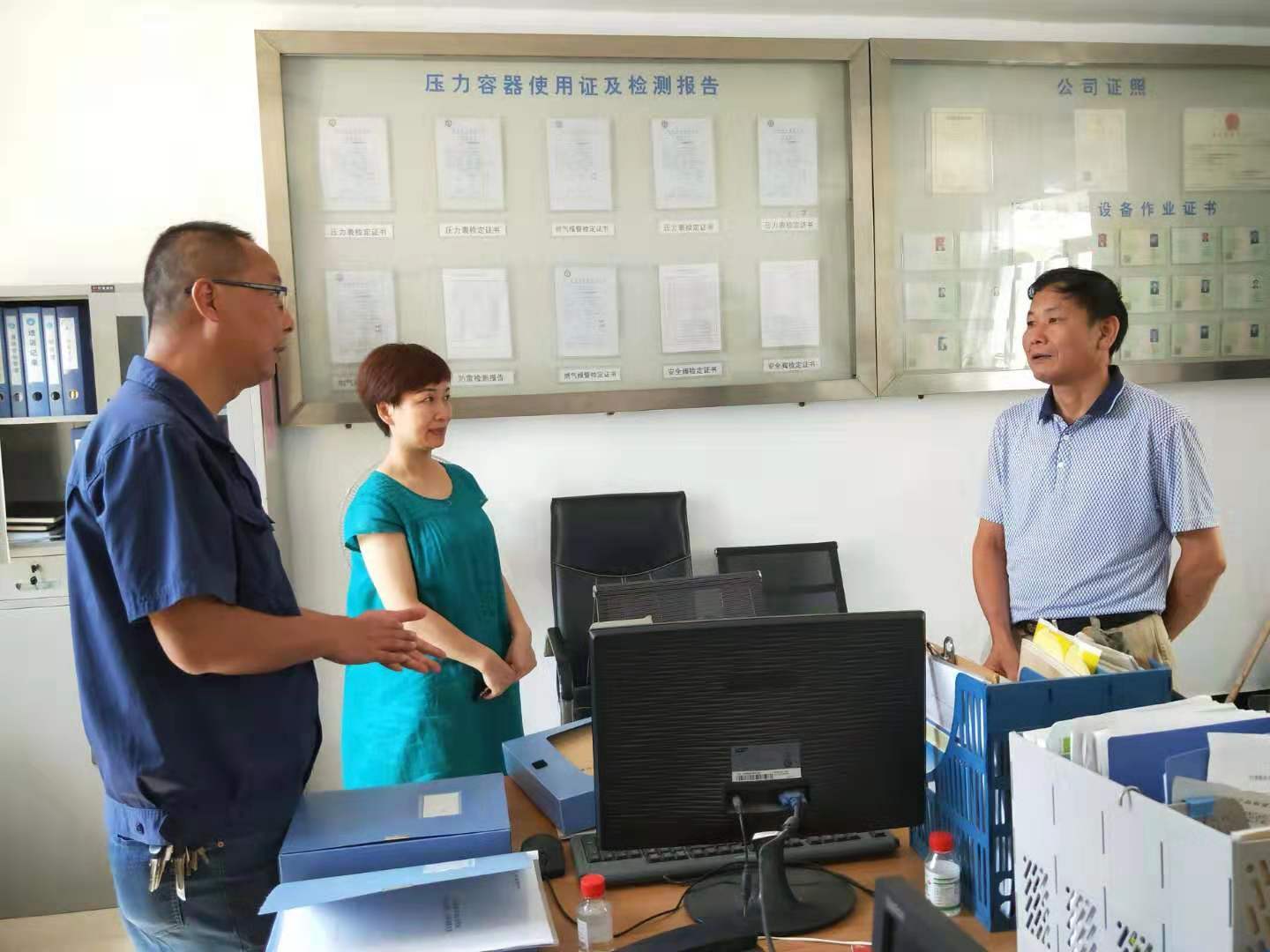 檢查組認(rèn)真審查了充裝人員特種作業(yè)操作資格持證情況,查閱了相關(guān)工作臺賬和計(jì)量檢定證書等,并對車用氣瓶充裝操作規(guī)范性等進(jìn)行了現(xiàn)場督查。檢查組對站內(nèi)的規(guī)范性充裝操作給予了肯定,并強(qiáng)調(diào)企業(yè)要時(shí)刻把安全擺在第一位,居安思危,杜漸防微,高溫季節(jié)里,要更嚴(yán)格地落實(shí)充裝人員持證、年審等安全管理工作,全方面保障車輛安全有序加氣。