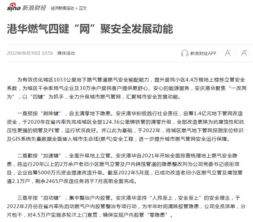 港華燃?xì)馑逆I“網(wǎng)”聚安全發(fā)展動能(轉(zhuǎn)載于新浪財(cái)經(jīng))