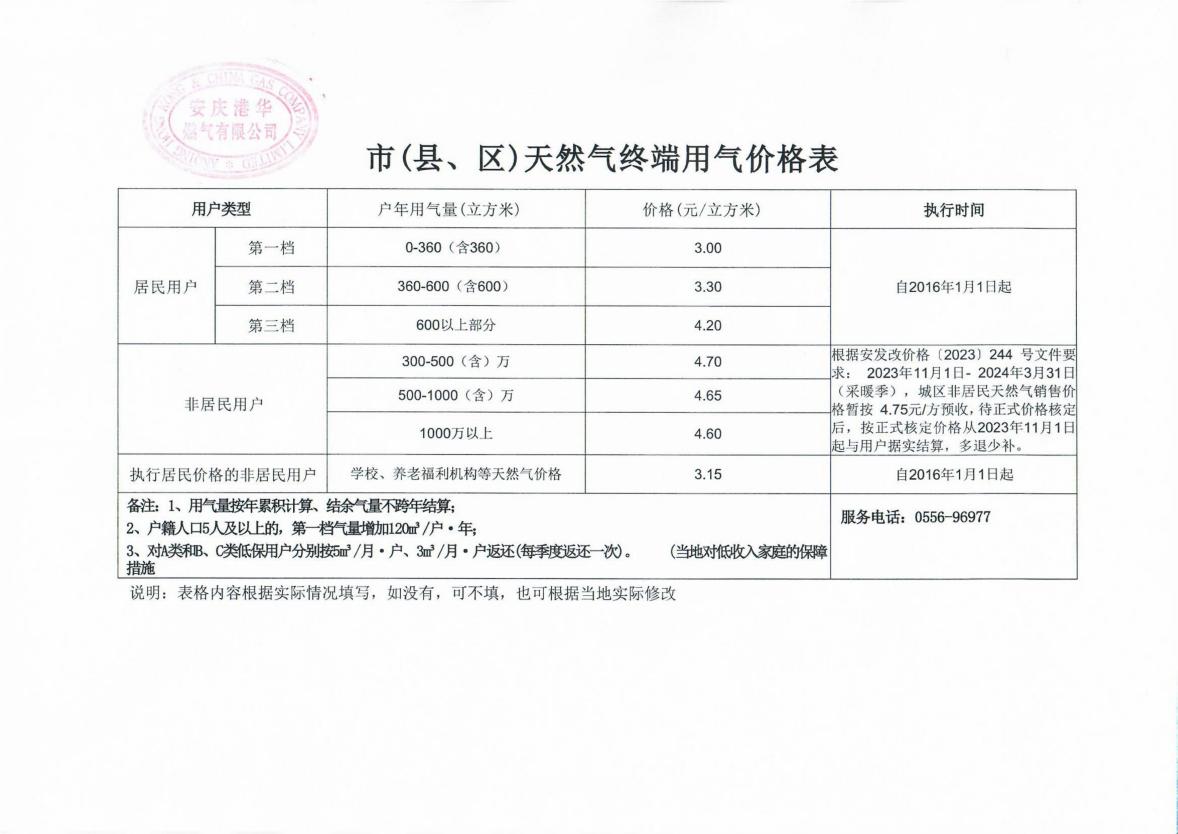 安慶港華規(guī)范收費承諾書(含行業(yè)收費項目清單及終端用氣價格表) 發(fā)布時間:2023-11-16    閱讀次數(shù):6792次