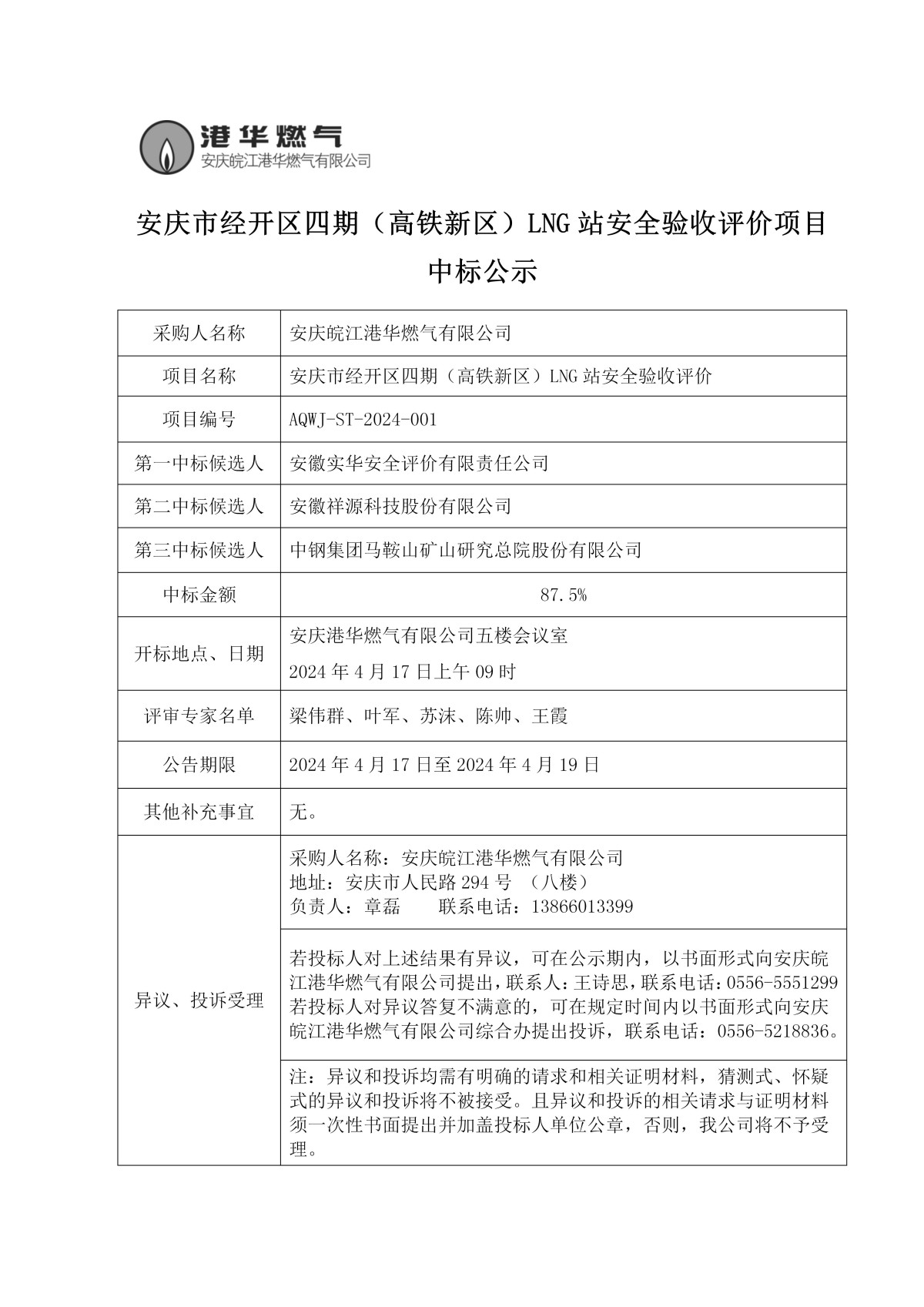 安慶市經(jīng)開區(qū)四期(高鐵新區(qū))LNG站安全驗收評價項目中標公示 發(fā)布時間:2024-04-17    閱讀次數(shù):3406次