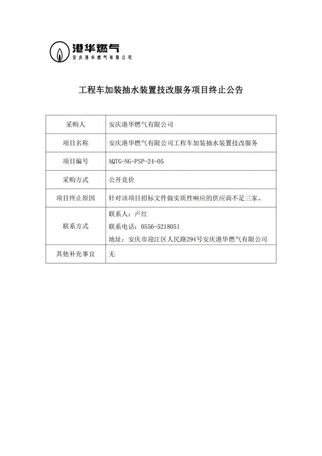 工程車加裝抽水裝置技改服務(wù)項目終止公告 發(fā)布時間:2024-10-28    閱讀次數(shù):2742次