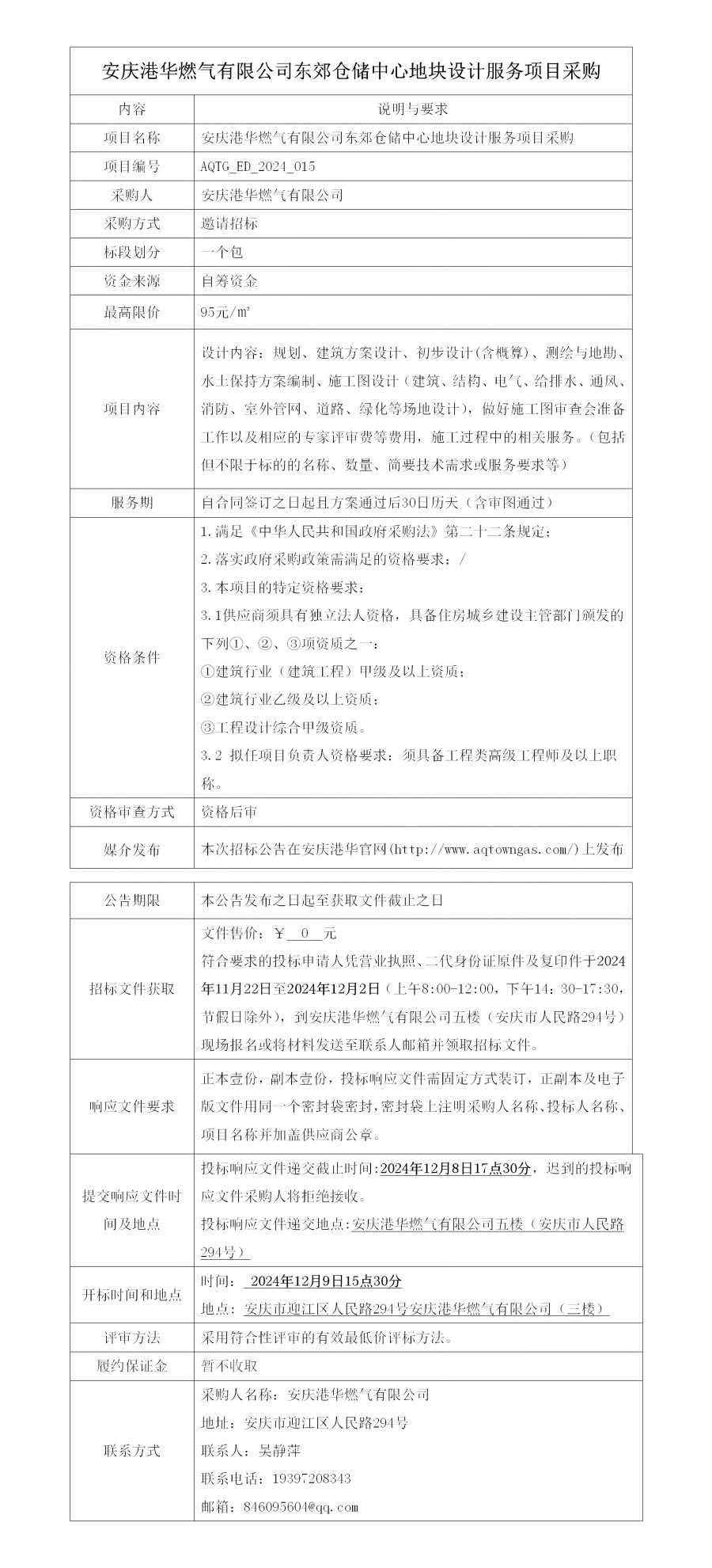 安慶港華燃?xì)庥邢薰緰|郊倉(cāng)儲(chǔ)中心地塊設(shè)計(jì)服務(wù)項(xiàng)目采購(gòu)