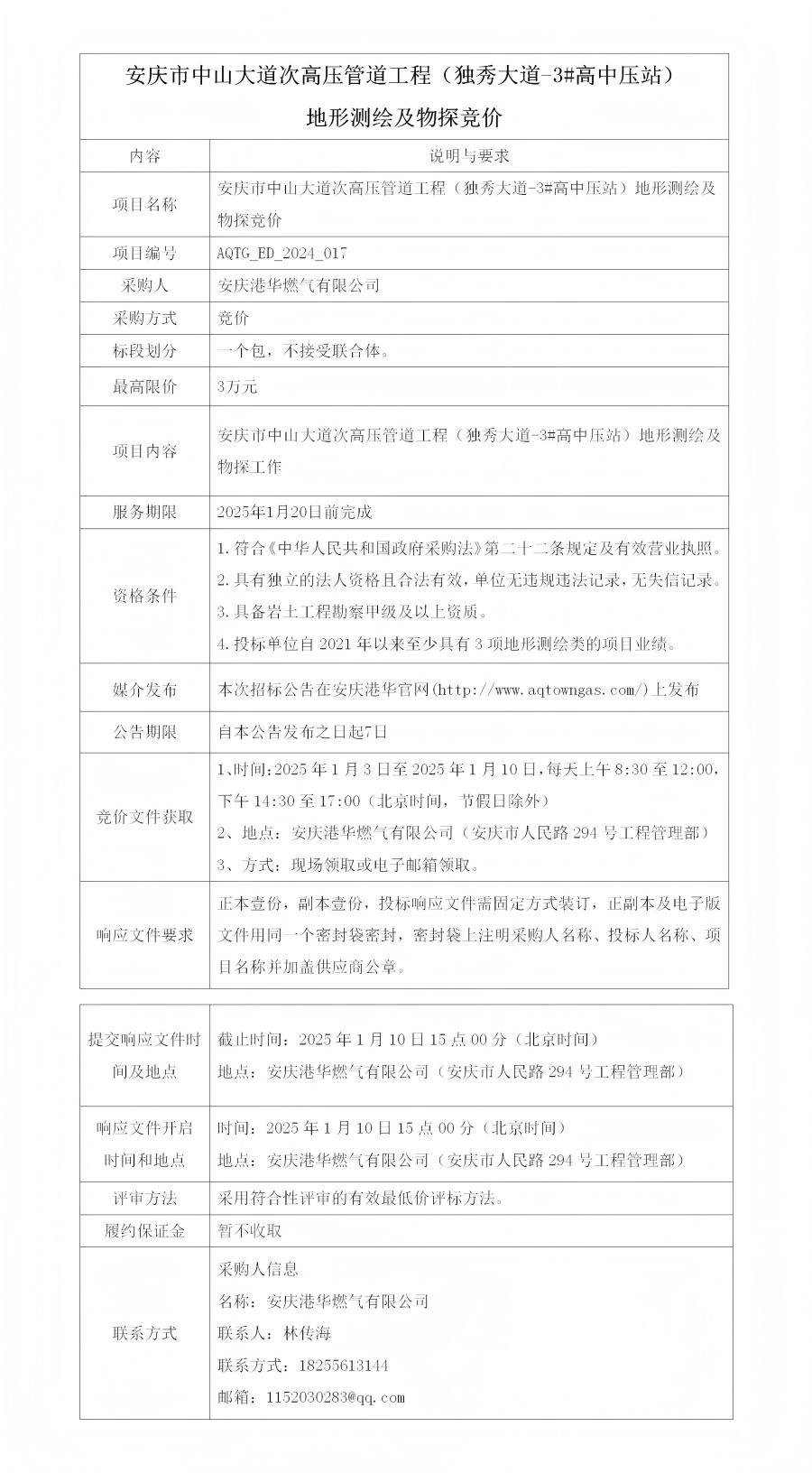 安慶市中山大道次高壓管道工程(獨(dú)秀大道-3#高中壓站)地形測(cè)繪及物探競(jìng)價(jià) 發(fā)布時(shí)間:2024-12-30    閱讀次數(shù):2520次