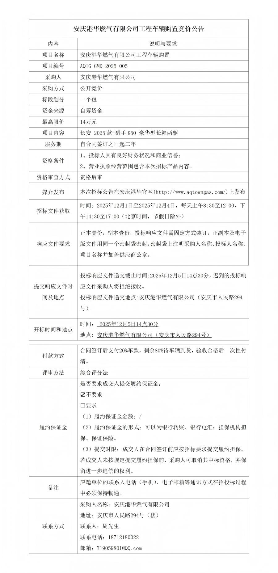 安慶港華燃?xì)庥邢薰竟こ誊囕v購置競(jìng)價(jià)公告