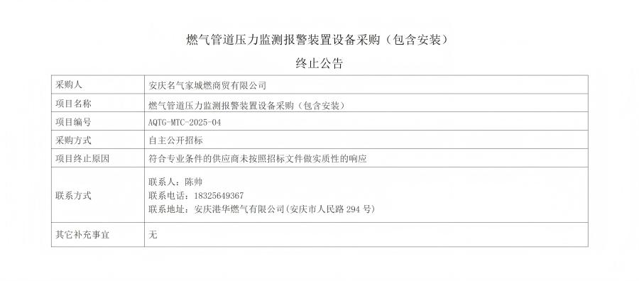 燃?xì)夤艿缐毫ΡO(jiān)測(cè)報(bào)警裝置設(shè)備采購(gòu)(包含安裝)終止公告