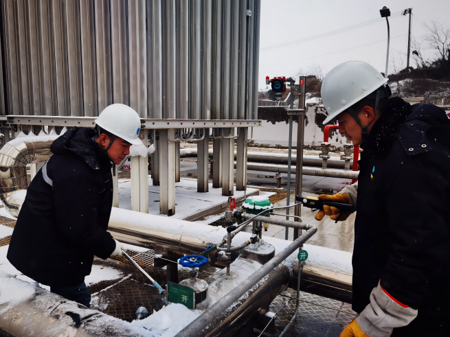 保障輸配勤維護(hù)。為保障低溫雨雪天氣下全市生產(chǎn)生活穩(wěn)定用氣,場站運(yùn)行工高頻次檢查各重要設(shè)備運(yùn)行情況,細(xì)致排查安全問題,一絲不茍確保關(guān)鍵環(huán)節(jié)處于良好運(yùn)行狀態(tài);巡線探漏人員頂風(fēng)冒雪,重點(diǎn)加大了人員密集區(qū)域及民生保障關(guān)鍵點(diǎn)的燃?xì)夤芫W(wǎng)巡查探漏,并對易受低溫影響的管道、閥井、調(diào)壓設(shè)備及時(shí)采取包裹棉被、排水等防凍措施。