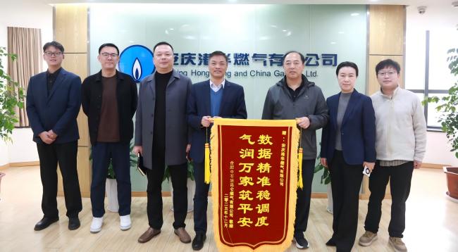 12月10日,合肥中石油昆侖燃?xì)庥邢薰径麻L(zhǎng)、總經(jīng)理于洪利一行至安慶港華,開(kāi)展燃?xì)獗9﹨f(xié)同工作專(zhuān)項(xiàng)交流活動(dòng),并贈(zèng)送了“數(shù)據(jù)精準(zhǔn)穩(wěn)調(diào)度、氣潤(rùn)萬(wàn)家筑平安”的錦旗。公司管理層及相關(guān)部門(mén)負(fù)責(zé)人參與交流。